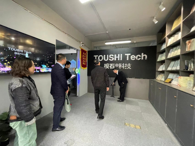 2023年3月28日,安徽省銅陵市委宣傳部常務副部長張進、市委宣傳部文改辦主任馬樂陵、市委宣傳部新聞辦劉克能一行到訪南京投石科技新媒體藝術(shù)展廳參觀考察。南京投石科技董事長孫峰峰等人出席接待并舉行工作座談,雙方就各自產(chǎn)業(yè)發(fā)展情況做了交流。