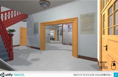 根據(jù)南京大學(xué)拉貝紀(jì)念館展廳現(xiàn)場(chǎng)裝修完成后的實(shí)景一樓房間制作三維場(chǎng)景(含進(jìn)門和走廊及二樓樓梯),使用Unity3D引擎制作展廳的漫游系統(tǒng),室內(nèi)展廳內(nèi)的展示牌可點(diǎn)擊并放大顯示詳細(xì)展牌內(nèi)容。