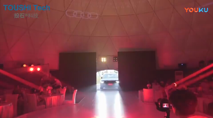 投石科技在上海國際會議中心為奇瑞eQ電動汽車新車發(fā)布會提供3D Mapping秀,用光影成像的方式亮相新車,以車體為投影背景呈現(xiàn)各種3D科幻效果。