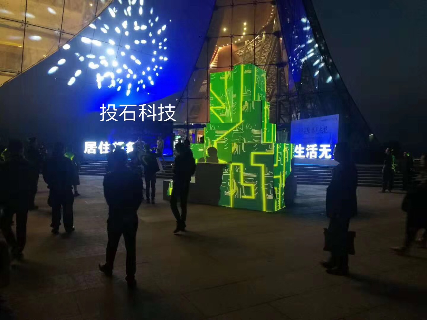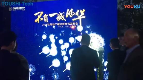 2018年6月6日,南京投石科技在蘇州廣電中心大樓為蘇州科技城金茂發(fā)布會提供了地面互動投影和二通道方塊MAPPING投影相關(guān)設(shè)備安裝、調(diào)試、所有與該批設(shè)備相關(guān)軟件開發(fā)等相關(guān)服務(wù)??萍几信c未來感十足,整體足夠高大上。 投石案例12:常州弘陽地產(chǎn)案名發(fā)布會