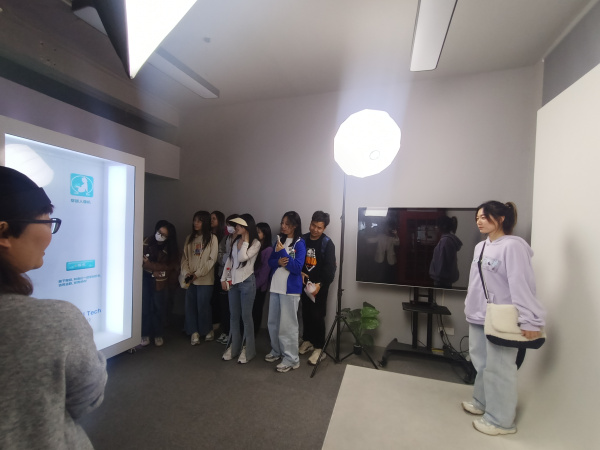 2023年4月27日下午,南京郵電大學(xué)傳媒與藝術(shù)學(xué)院副教授譚維及2022級研究生一行參觀體驗投石科技新媒體藝術(shù)基地。投石科技王老師熱情接待了他們。