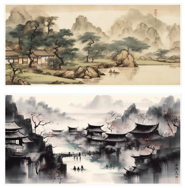 圖:AI繪畫(huà)軟件生成的山水畫(huà)AI沈周