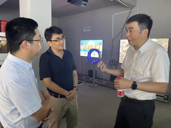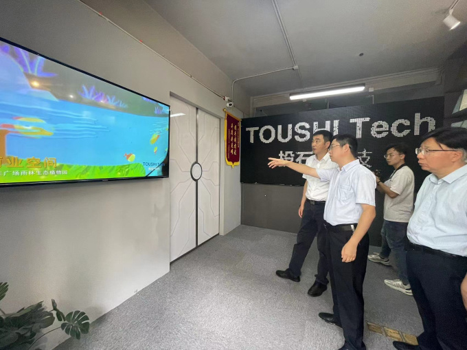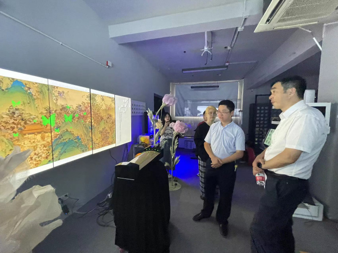 為積極推動(dòng)數(shù)字經(jīng)濟(jì)與文化產(chǎn)業(yè)的深度融合,2023年7月26日,南京市委宣傳部副部長(zhǎng)、市文明辦主任經(jīng)地生,玄武區(qū)區(qū)委常委、宣傳部部長(zhǎng)馬千山、區(qū)委宣傳部副部長(zhǎng)、網(wǎng)信辦主任韓春云、玄武湖街道黨委書記但加成等一行蒞臨投石科技新媒體藝術(shù)展廳參觀調(diào)研。南京市玄武區(qū)政協(xié)委員、南京投石科技有限公司董事長(zhǎng)孫峰峰熱情接待,并對(duì)他們一行的到來表示歡迎。