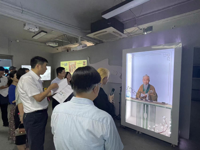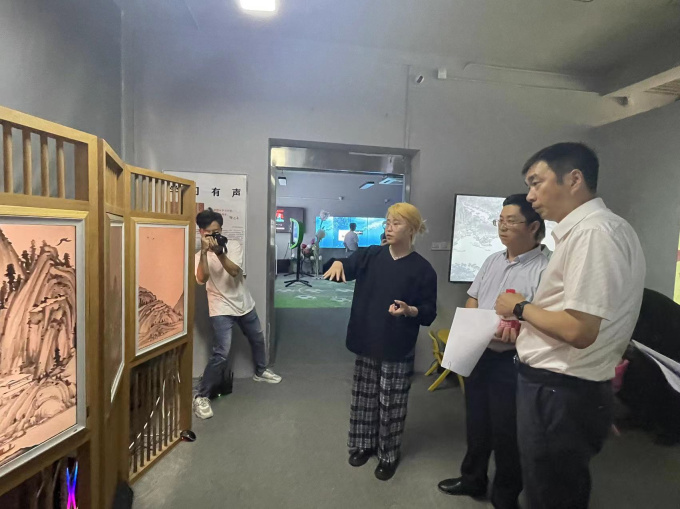 通過聲畫結(jié)合的新媒體藝術(shù)裝置《指尖靈犀》對(duì)AI繪畫的本質(zhì)進(jìn)行了視覺化表達(dá)。該展品以“數(shù)字仇英”所創(chuàng)作的中國古典山水畫為基礎(chǔ),引入了動(dòng)態(tài)粒子引擎和音畫互動(dòng)技術(shù)。觀眾可以通過撥動(dòng)激光琴弦觸發(fā)畫面實(shí)時(shí)粒子變化效果,重構(gòu)傳統(tǒng)元素,體驗(yàn)科技與古典美學(xué)相交融的視聽盛宴。 最后,調(diào)研組領(lǐng)導(dǎo)表示,通過此次調(diào)研走訪南京投石,詳細(xì)了解了公司的核心技術(shù),產(chǎn)品和技術(shù)等方面情況,同時(shí)對(duì)公司近年參與建設(shè)的大型文旅夜游產(chǎn)品和案例、公司的研發(fā)能力、技術(shù)隊(duì)伍和發(fā)展?fàn)顩r表示了高度肯定,尤其是對(duì)各高校開展產(chǎn)教融合實(shí)訓(xùn)基地建設(shè)試點(diǎn)項(xiàng)目等工作成果。這種通過藝術(shù)與科技的融合,聚焦“中國古典審美”的要素分析和審美生成的主題,探索利用人工智能技術(shù)生成中國古典美,值得被借鑒學(xué)習(xí),進(jìn)而引導(dǎo)受眾理解中國古典美學(xué)的嶄新路徑。