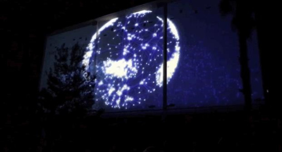 可以隨著觀眾的現(xiàn)場互動而實(shí)時鏈接生成畫面,投影在城市的建筑上。