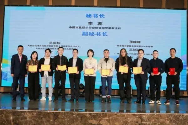致辭結(jié)束后,現(xiàn)場(chǎng)開(kāi)始聘任證書頒發(fā)環(huán)節(jié)。南京大學(xué)祁林教授當(dāng)選為副主任委員,南京投石智能系統(tǒng)有限公司董事長(zhǎng)孫峰峰被聘任為智慧旅游沉浸式專業(yè)委員會(huì)副秘書長(zhǎng),南京投石智能系統(tǒng)有限公司為中國(guó)文化娛樂(lè)行業(yè)協(xié)會(huì)智慧旅游沉浸式專業(yè)委員會(huì)委員單位。同時(shí),此次大會(huì)還產(chǎn)生了智慧旅游沉浸式專業(yè)委員會(huì)主任、副主任、秘書長(zhǎng)和專家顧問(wèn)等職位。