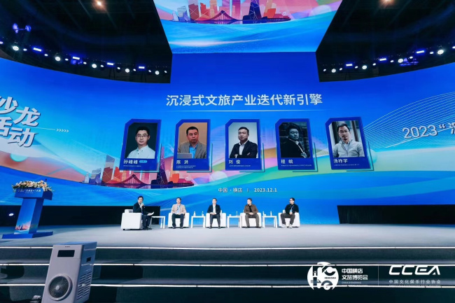 在活動中,與會者圍繞沉浸式體驗在文旅產(chǎn)業(yè)中的應(yīng)用展開了深入討論,探討了如何通過技術(shù)手段為游客打造更為逼真、身臨其境的旅游體驗,以及如何將傳統(tǒng)文化與現(xiàn)代科技相結(jié)合,創(chuàng)造出更具吸引力和獨特性的文旅產(chǎn)品。同時,與會者還分享了各自在實踐中的成功案例和創(chuàng)新思路。 在圓桌對話環(huán)節(jié),南京投石科技有限公司董事長孫峰峰、北京郵電大學(xué)交互技術(shù)與體驗系統(tǒng)文旅部重點實驗室常務(wù)副主任陳洪、深圳市洲明科技股份有限公司副總裁劉俊、無錫拈花灣文化投資發(fā)展有限公司夢想工作室總經(jīng)理程皖、上海劇嗨文化科技有限公司創(chuàng)始人兼CEO湯祚宇圍繞《沉浸式文旅產(chǎn)業(yè)迭代新引擎》展開研討,認(rèn)為沉浸式體驗將深刻改變傳統(tǒng)文旅產(chǎn)業(yè)格局,為行業(yè)帶來更為廣闊的發(fā)展前景。 在數(shù)字化、智能化浪潮中,沉浸式文旅體驗不僅滿足了現(xiàn)代消費者對于個性化、深度體驗的渴望,更為文旅產(chǎn)業(yè)注入了創(chuàng)新活力。他們一致認(rèn)為,沉浸式體驗將深刻改變傳統(tǒng)文旅產(chǎn)業(yè)格局,為行業(yè)帶來更為廣闊的發(fā)展前景。沉浸式體驗通過將科技與文化、旅游等元素相融合,為游客打造了一種全新的、身臨其境的體驗方式,從而引發(fā)了文旅產(chǎn)業(yè)的創(chuàng)新與變革。 同時,專家們也指出了沉浸式文旅產(chǎn)業(yè)面臨的一些挑戰(zhàn),如技術(shù)應(yīng)用、跨界合作、人才培養(yǎng)等方面的問題。他們提出,為了推動沉浸式文旅產(chǎn)業(yè)的持續(xù)發(fā)展,需要加強政策支持、促進(jìn)跨界合作、培養(yǎng)專業(yè)人才、提升科技應(yīng)用水平等措施。