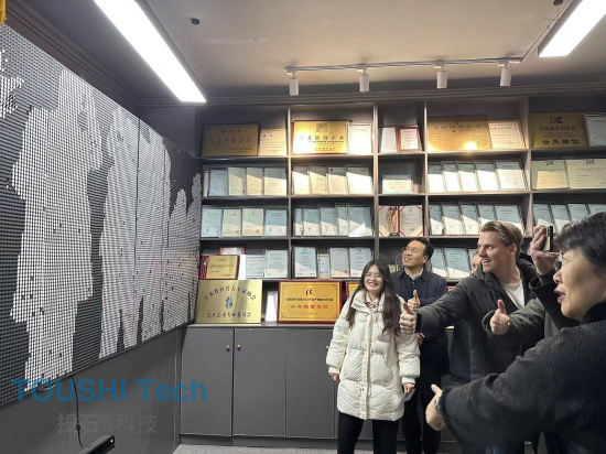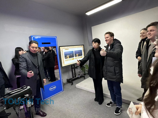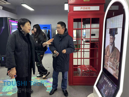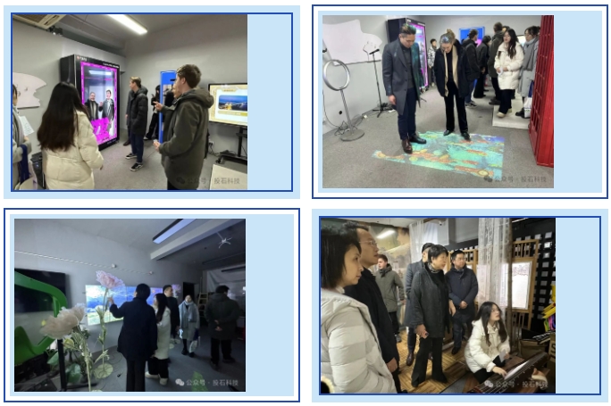 在參觀過程中,代表團了解了南京投石科技在人工智能、虛擬現(xiàn)實、增強現(xiàn)實等領域的技術創(chuàng)新和應用情況,并且親身體驗了展廳各種趣味互動科技,包括機械磁力屏、AI數(shù)字人、全息互動……投石科技的互動展示讓代表團成員們感受到了科技的趣味和互動性,以及科技在文化傳承和推廣方面的巨大潛力。