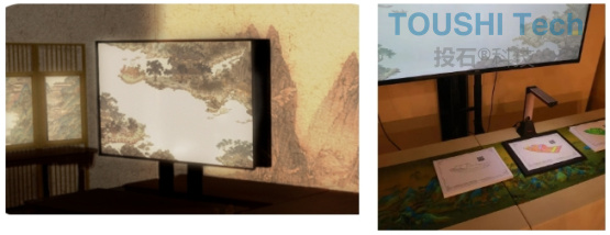 采用游戲引擎Unity制作,以“數(shù)字沈周”繪制的山水畫作為主題,使用多通道的Shader渲染技術(shù),掃描由觀眾現(xiàn)場創(chuàng)作設(shè)計(jì)的二維圖像,利用實(shí)時(shí)生成物體模型將其呈現(xiàn)至畫面中,觀眾親手繪制的扁舟會(huì)在“大師”的山水畫中遨游,體驗(yàn)虛擬與現(xiàn)實(shí)實(shí)時(shí)交互的巧妙感,感受數(shù)字化藝術(shù)的魅力和創(chuàng)造性轉(zhuǎn)化的力量。 作品5:審美書頁