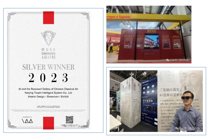 2023年,為進(jìn)一步強(qiáng)化南京大學(xué)美育育人功能,進(jìn)一步構(gòu)建德智體美勞全面培養(yǎng)的教育體系。南京投石就作為合作伙伴為南京大學(xué)開辦過2期AI美育課程訓(xùn)練營,分別是《中國古典藝術(shù)的AI計(jì)算、生成與美育》訓(xùn)練營和《AI與中西視覺文明互鑒”美育實(shí)踐訓(xùn)練營》,并且成功舉辦第一期《AI與中華美學(xué)氣韻再生——南京大學(xué)新媒體美育創(chuàng)新實(shí)踐展》,取得了多項(xiàng)成果,在南京大學(xué)官網(wǎng)和微信公眾號(hào)都做了詳細(xì)報(bào)道。 在2023年7月,在俄羅斯葉卡特琳娜堡舉辦的第七屆中國-俄羅斯文化博覽會(huì)上,南京大學(xué)和投石智能聯(lián)合主辦的“中國古典藝術(shù)的AI計(jì)算、生成與美育”創(chuàng)作實(shí)踐成果,作為中國特色文旅的代表受邀參展,并獲得美國“設(shè)計(jì)界奧斯卡”——2023繆斯設(shè)計(jì)獎(jiǎng)銀獎(jiǎng),12月代表中國文旅企業(yè)亮相日本東京的內(nèi)容營銷展覽會(huì)并取得了巨大成功。這一創(chuàng)新性技術(shù)的展示,不僅獲得了現(xiàn)場觀眾的一致好評(píng),更被新華網(wǎng)、南京日?qǐng)?bào)/紫金山新聞、南報(bào)網(wǎng)等權(quán)威媒體平臺(tái)報(bào)道,引起了業(yè)內(nèi)外廣泛關(guān)注。目前,第二期《AI與中西視覺文明互鑒”美育實(shí)踐展》正在策展制作中。