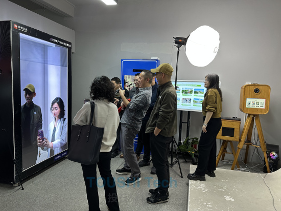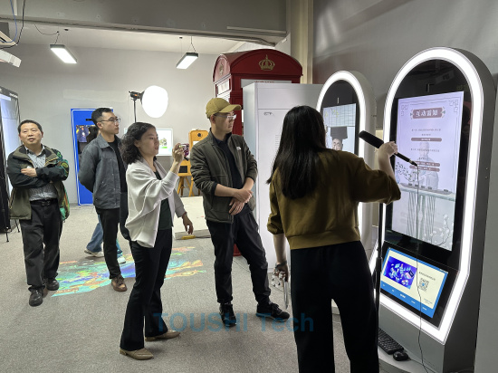 活動(dòng)伊始,南京理工大學(xué)教師團(tuán)隊(duì)在投石科技工作人員的陪同下,參觀了公司的新媒體藝術(shù)展廳。展廳內(nèi),一系列互動(dòng)裝置藝術(shù)作品吸引了大家的目光。這些作品融合了最新的科技元素和藝術(shù)創(chuàng)意,不僅展示了新媒體藝術(shù)的魅力,也體現(xiàn)了投石科技在智能互動(dòng)技術(shù)領(lǐng)域的創(chuàng)新實(shí)力。工作人員詳細(xì)介紹了每件作品的創(chuàng)作理念、技術(shù)實(shí)現(xiàn)以及互動(dòng)體驗(yàn),特別強(qiáng)調(diào)了與南京大學(xué)合作展開(kāi)的二期AI美育訓(xùn)練營(yíng)項(xiàng)目規(guī)劃與實(shí)施成果系列作品,讓在場(chǎng)的教師們對(duì)新媒體藝術(shù)與技術(shù)有了更加直觀和深入的了解。這些作品不僅體現(xiàn)了人工智能與藝術(shù)的完美結(jié)合,也展示了投石科技在推動(dòng)藝術(shù)教育創(chuàng)新方面的積極探索。