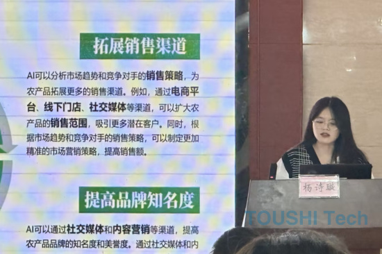 楊老師首先從人工智能的概念出發(fā),深入剖析了其在市場中的應(yīng)用現(xiàn)狀及未來發(fā)展趨勢。她結(jié)合豐富的案例,展示了AI技術(shù)在農(nóng)產(chǎn)品市場分析、預(yù)測以及個性化推薦等農(nóng)產(chǎn)品銷售環(huán)節(jié)的應(yīng)用情況,并特別強(qiáng)調(diào)了AI在提升農(nóng)產(chǎn)品營銷效率、優(yōu)化供應(yīng)鏈管理等方面所展現(xiàn)的巨大潛力。