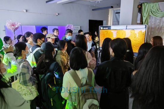 投石科技的講解員介紹了展廳產(chǎn)品的技術(shù)實現(xiàn)和應用場景,更引導師生們深入領略每項技術(shù)的獨特之處及其在廣告策劃中的潛在價值。