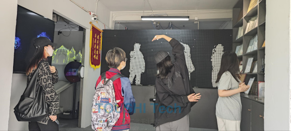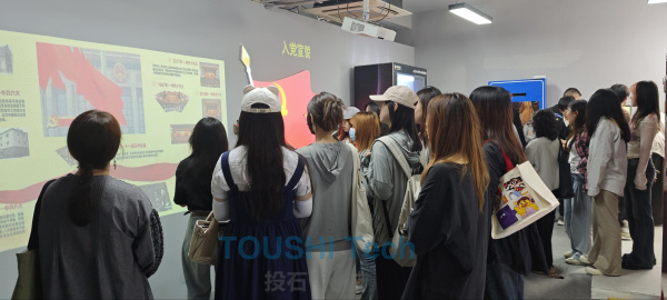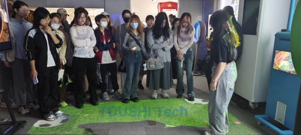 在參觀過程中,學(xué)生們紛紛駐足學(xué)習(xí),積極體驗各類互動產(chǎn)品,并通過拍照打卡的方式記錄下了這難忘的一刻。 值得一提的是,在4月18日下午,南京理工大學(xué)設(shè)計藝術(shù)與傳媒學(xué)院就已經(jīng)與投石科技進行了初步的洽談合作。雙方就新媒體藝術(shù)領(lǐng)域的教學(xué)、科研以及產(chǎn)業(yè)合作等方面進行了深入的交流,達成了初步的合作意向。此次參觀體驗更是為雙方的合作奠定了堅實的基礎(chǔ)。 在南京理工大學(xué)設(shè)計藝術(shù)與傳媒學(xué)院與投石科技新媒體藝術(shù)展廳的互訪交流中,雙方不僅進行了參觀和體驗,更在深入探討中達成了多項實質(zhì)性的合作共識。這次參觀交流不僅為師生們提供了一個接觸前沿科技和藝術(shù)創(chuàng)作的平臺,也為學(xué)院和企業(yè)之間的產(chǎn)學(xué)研合作提供了新的契機。