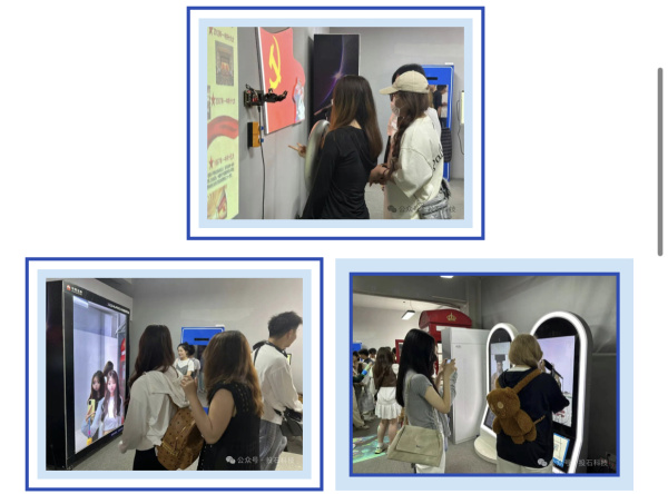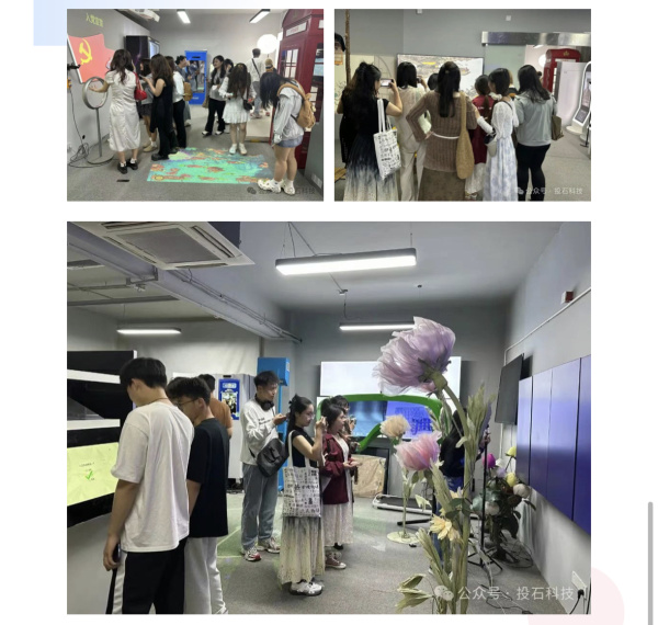在展廳的其他區(qū)域,師生們還體驗(yàn)了AIGC拍照機(jī)、氣味電影、騎車吹氣球裝置、地面投影互動(dòng)、聲音郵局、氣韻再生等多種互動(dòng)裝置。這些裝置通過聲、光、電等多種媒介的巧妙結(jié)合,營造出沉浸式的藝術(shù)體驗(yàn)空間。投石科技的工作人員為師生們?cè)敿?xì)講解了各個(gè)裝置的設(shè)計(jì)理念和創(chuàng)作過程,使大家深刻感受到了新媒體藝術(shù)的獨(dú)特魅力和無限可能。