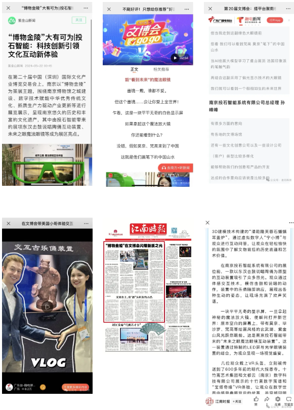 此次展會,除了觀眾的熱情參與,各主流媒體也對投石智能的展位進行了深入報道。廣東廣播電視臺、新華網、南方日報、南方+、江南時報、紫金山新聞等多家媒體紛紛派出記者前來采訪報道。通過現場直播、短視頻等多種形式,向全球展示了投石智能在文化產業(yè)數字化創(chuàng)新方面的實力和魅力。