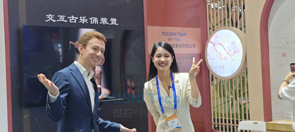 部分媒體報道截圖: 其中,廣東廣播電視臺-觸電新聞更是進行了獨家采訪報道,通過帶美國小哥體驗交互古樂俑的方式,將觀眾帶入了一個充滿古韻與科技的奇妙世界。觀眾仿佛穿越至數千年前,親身感受到了古代文化的獨特魅力。 在采訪中,各媒體對投石智能的創(chuàng)新產品和技術給予了高度評價。他們表示,投石智能通過運用先進的數智技術,成功地將傳統(tǒng)文化與現代科技相結合,為觀眾帶來了全新的互動體驗。這種創(chuàng)新方式不僅展示了中華優(yōu)秀傳統(tǒng)文化的魅力,也為文化產業(yè)的發(fā)展注入了新的活力。 南京投石智能系統(tǒng)有限公司深耕智慧文旅夜游、智慧公園建設、各類主題展館、互動公共空間、智能互動體驗等領域的創(chuàng)新服務,善于利用影像、聲音、燈光、機械裝置等各類載體和介質,對整體工程的創(chuàng)意設計實現、技術支撐,為各行業(yè)提供新媒體互動營銷情境下的原創(chuàng)互動創(chuàng)意方案。 自深圳文博會開幕以來,投石智能的展位人頭攢動,參觀人數持續(xù)爆滿,吸引了來自世界各地的觀眾和媒體的廣泛關注。眾多觀眾被其帶來的東漢擊鼓說唱陶俑互動裝置、未來之眼魔法眼鏡等創(chuàng)新產品所吸引,紛紛駐足體驗,與工作人員交流互動。 這兩款互動裝置以其獨特的創(chuàng)意和先進的技術,讓觀眾們仿佛穿越時空,親身感受到了中華優(yōu)秀傳統(tǒng)文化的魅力。其中,東漢擊鼓說唱陶俑互動裝置以國家一級文物“漢代第一俑”、東漢擊鼓說唱陶俑為原型進行設計,采用體感交互技術,核心在于能夠利用無接觸的身體姿勢來控制樂俑的動作變化,使顯示的畫面同步發(fā)生變化,將憨態(tài)可掬、生動傳神的文物再現,為用戶帶來超強的科技感和快樂的體驗感,建立觀眾與文物的互動,既尊重文物原型,又符合動畫規(guī)律,讓觀眾在交流中體會樂俑的神韻。