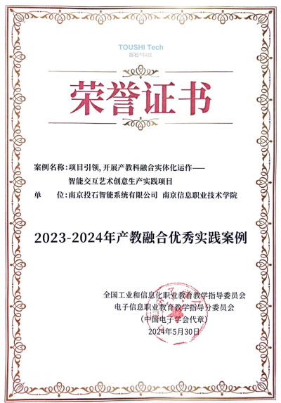 投石與南信院產(chǎn)學(xué)研項(xiàng)目榮獲中國(guó)電子學(xué)會(huì)2023-2024年產(chǎn)教融合優(yōu)秀實(shí)踐案例