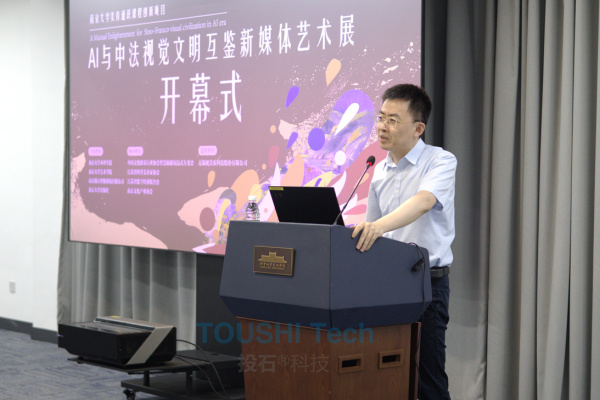 此次“AI與中法視覺文明互鑒新媒體藝術(shù)展”的成功舉辦,不僅展現(xiàn)了人工智能技術(shù)在藝術(shù)創(chuàng)作領(lǐng)域的廣闊應(yīng)用前景,更促進(jìn)了中法兩國在文化藝術(shù)領(lǐng)域的交流與合作。南京投石智能系統(tǒng)有限公司,作為一家專注于新媒體藝術(shù)、人機交互及人工智能技術(shù)研發(fā)與應(yīng)用的高新技術(shù)企業(yè),在人工智能、計算機視覺及機械藝術(shù)等領(lǐng)域積累了豐富的技術(shù)經(jīng)驗和實踐成果。在本次展覽中,投石智能不僅提供了先進(jìn)的軟硬件系統(tǒng),還提供了AI軟件教學(xué)訓(xùn)練,幫助同學(xué)們更好地掌握AI繪畫和設(shè)計的基礎(chǔ)知識,為展覽的順利進(jìn)行提供了有力保障。 此外,中國文化娛樂行業(yè)協(xié)會智慧旅游沉浸式專委會、江蘇省科普美術(shù)家協(xié)會、江蘇省數(shù)字經(jīng)濟聯(lián)合會、南京文化產(chǎn)業(yè)協(xié)會、無錫視美樂等單位也為本次展覽提供了協(xié)助與支持,共同推動了展覽的圓滿成功。