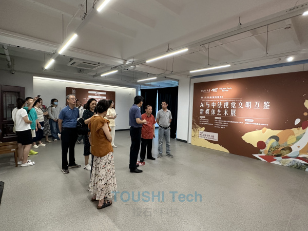 ?。ê嫌傲裟睿?/div> 2024年7月6日上午,江蘇省發(fā)改委原主任、南京大學(xué)教授及博士生導(dǎo)師錢志新一行,蒞臨由南京投石智能系統(tǒng)有限公司與南京大學(xué)本科生院、南京大學(xué)藝術(shù)學(xué)院精心策劃的“AI與中法視覺文明互鑒新媒體藝術(shù)展”。南京投石智能系統(tǒng)有限公司董事長孫峰峰和南京大學(xué)藝術(shù)學(xué)院博士生導(dǎo)師祁林兩位策展人親自接待,并引領(lǐng)嘉賓們深入探索這場科技與藝術(shù)完美交融的盛宴。