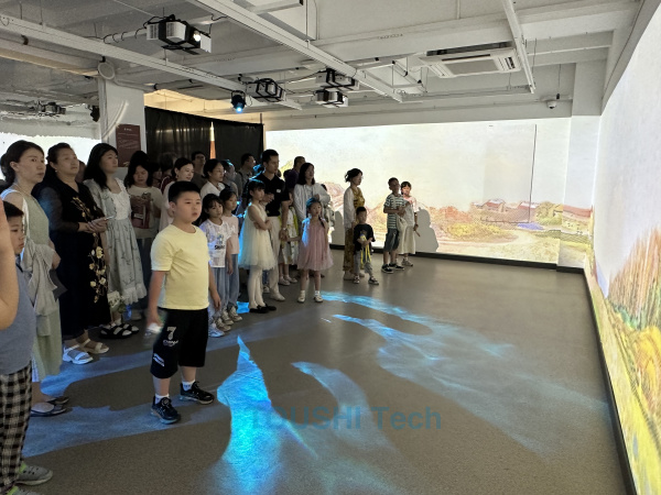 展會(huì)現(xiàn)場工作人員為大家進(jìn)行導(dǎo)覽講解。紅外感應(yīng)技術(shù)、AIGC實(shí)時(shí)轉(zhuǎn)繪、數(shù)字氣味技術(shù)等互動(dòng)體驗(yàn),讓人仿佛置身于一個(gè)沉浸式的藝術(shù)世界,充分體驗(yàn)到科技與藝術(shù)的魅力,贏得了一致好評(píng)。校友們紛紛表示,本次展覽不僅是一次視覺盛宴,更是一次思維碰撞和靈感激發(fā)的過程。