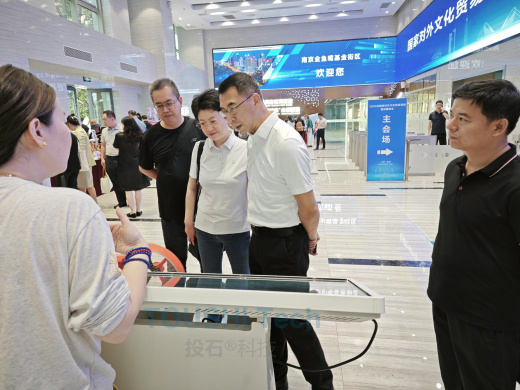 會議期間,南京投石科技有限公司(以下簡稱“投石科技”)攜“梵高寫真館”、“彩繪金陵”及圓柱型全息柜互動裝置等文化創(chuàng)意展品,亮相于“2024國家對外文化貿(mào)易基地建設(shè)專題培訓(xùn)班”產(chǎn)品展示環(huán)節(jié)。文化和旅游部產(chǎn)業(yè)發(fā)展司司長繆沐陽、文化和旅游部產(chǎn)業(yè)發(fā)展司國際合作處處長邵二郎、江蘇省文化和旅游廳產(chǎn)業(yè)處處長何勇等領(lǐng)導(dǎo)先后來到投石科技展位參觀交流。此次亮相,不僅是投石科技對文化創(chuàng)新與技術(shù)融合的一次深度探索,更是中國文化產(chǎn)業(yè)向世界展示中國故事、傳遞東方美學(xué)的重要窗口。