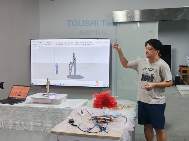 8月20日上午9時(shí),訓(xùn)練營(yíng)在一片熱烈的掌聲中正式拉開帷幕。開營(yíng)儀式上,江蘇省科普美術(shù)家協(xié)會(huì)秘書長(zhǎng)鄭靜與南京投石智能系統(tǒng)有限公司董事長(zhǎng)孫峰峰作為此次主辦方代表發(fā)表了熱情洋溢的致辭,表達(dá)了對(duì)參與者的熱烈歡迎和對(duì)訓(xùn)練營(yíng)成功舉行的誠(chéng)摯祝愿。他們強(qiáng)調(diào),科技與藝術(shù)的結(jié)合是未來發(fā)展的重要趨勢(shì),希望通過此次訓(xùn)練營(yíng),能夠激發(fā)更多創(chuàng)意火花,推動(dòng)機(jī)械藝術(shù)裝置的創(chuàng)新與發(fā)展。 在接下來的四天里,訓(xùn)練營(yíng)安排了緊湊而充實(shí)的課程內(nèi)容。從理論到實(shí)踐,逐步深入探索機(jī)械藝術(shù)裝置的開發(fā)技術(shù)路線。他們將親手搭建動(dòng)態(tài)裝置原型作品,學(xué)習(xí)開源硬件的編程控制,將燈光與機(jī)械進(jìn)行融合,創(chuàng)作出具有視覺沖擊力的裝置作品。同時(shí),學(xué)員們還會(huì)參與動(dòng)態(tài)裝置藝術(shù)創(chuàng)作分析課程,通過分析國(guó)內(nèi)外知名動(dòng)態(tài)裝置藝術(shù)家的作品,汲取靈感,提升自己的跨學(xué)科思考素養(yǎng)。課程結(jié)束后,主辦方還將組織學(xué)員們分組創(chuàng)作一批動(dòng)態(tài)裝置作品,面向社會(huì)公眾展出。