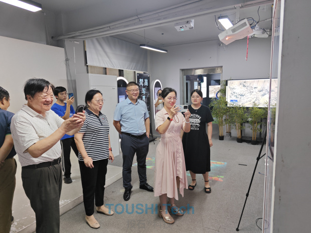 最后,雙方就當前經(jīng)濟形勢、行業(yè)發(fā)展趨勢、企業(yè)經(jīng)營管理等多方面內容進行了深入交流與探討。南京市南通商會輪值會長一行對投石科技所取得的成就給予了高度評價,并表示商會將一如既往地關注和支持本土企業(yè)的成長與發(fā)展,希望未來能加強與投石科技的交流合作,共同為助力南通經(jīng)濟文化繁榮發(fā)展,賦能更多南通籍企業(yè)家。 會前,他們一行先后參觀了南京投石科技有限公司新媒體藝術展廳。在展廳內,商會領導層被一系列高科技互動裝置和藝術作品深深吸引。這些作品巧妙地將投石科技的核心技術——如數(shù)字投影、觸控交互、虛擬現(xiàn)實(VR)、增強現(xiàn)實(AR)等——融入藝術設計中,創(chuàng)造出既具科技感又富含文化內涵的沉浸式體驗空間。從流光溢彩的墻面投影到可以觸摸并與之互動的虛擬場景,每一項展示都讓人目不暇接,仿佛置身于一個充滿無限可能的未來世界。 參觀過程中,投石科技的工作人員還詳細介紹了每項技術的原理、應用場景以及背后的研發(fā)團隊和創(chuàng)新故事。這不僅讓商會領導層對投石科技的技術實力和市場前景有了更為直觀和深入的了解,也激發(fā)了他們對于科技創(chuàng)新與產業(yè)升級的濃厚興趣和深入思考。