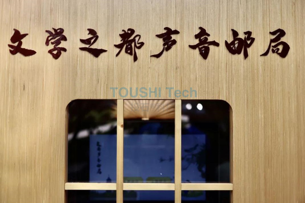 在南京世界文學(xué)客廳的院子里面,有一個特別的存在——文學(xué)之都的聲音郵局裝置。這是南京投石在2022年為展廳專屬定制的互動裝置,為民眾帶來了更為多元的文化體驗(yàn)。正如央視新聞報道中講解員萬梓葉介紹的那樣,在這里,人們可以錄制一段話給好朋友。