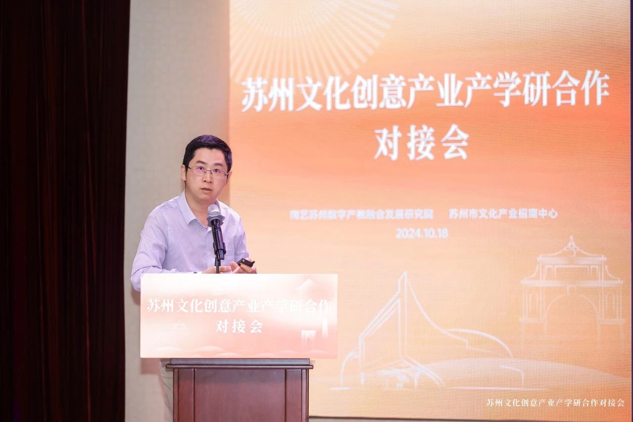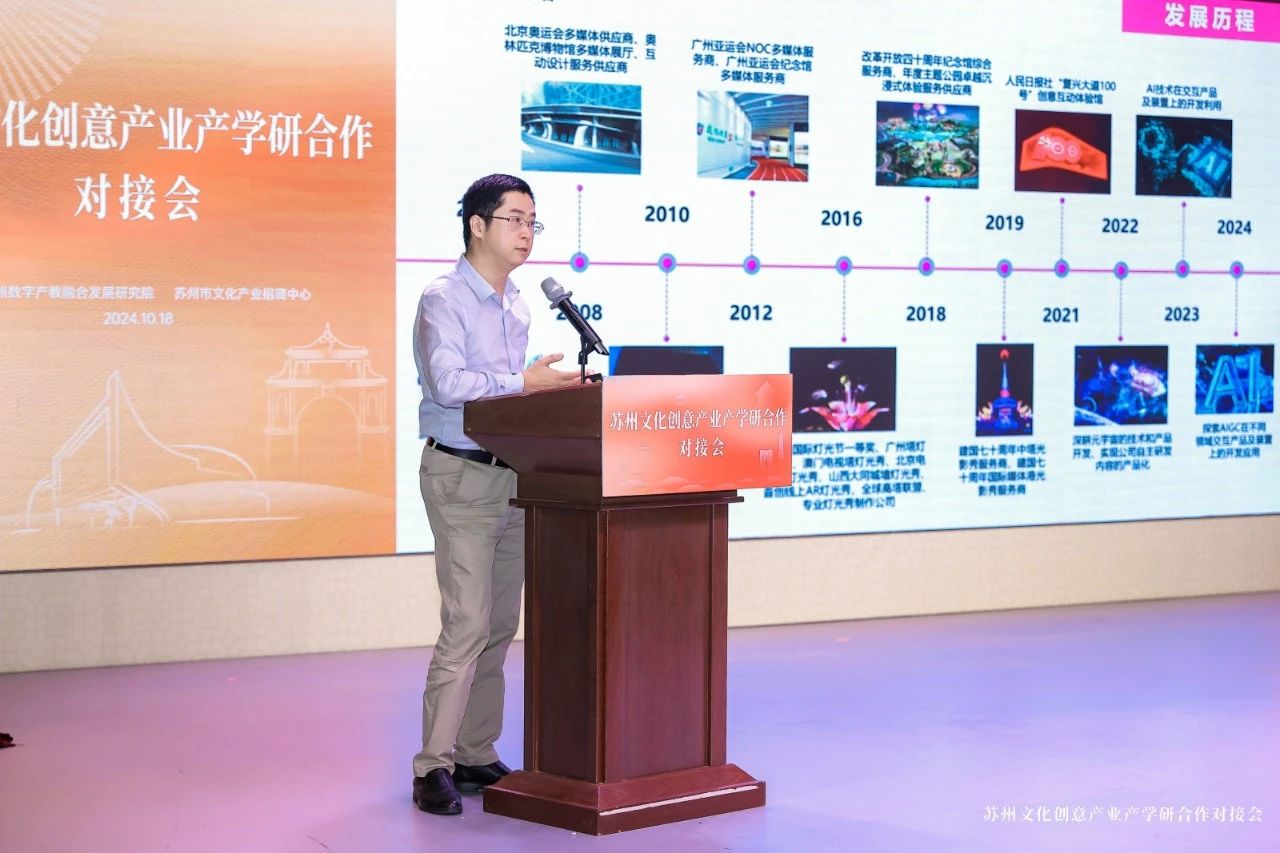 2024年10月18日至10月19日,由南京藝術(shù)學(xué)院蘇州數(shù)字產(chǎn)教融合發(fā)展研究院和蘇州市文化產(chǎn)業(yè)招商中心共同主辦的蘇州文化創(chuàng)意產(chǎn)業(yè)產(chǎn)學(xué)研合作對接會,在蘇州第十三屆文博會期間成功舉辦。南京投石智能系統(tǒng)有限公司董事長孫峰峰出席會議,并在會上發(fā)表了題為《AI語境下的數(shù)字藝術(shù)產(chǎn)學(xué)研探索》的演講,分享了在人工智能時(shí)代下,數(shù)字藝術(shù)與產(chǎn)學(xué)研結(jié)合的創(chuàng)新路徑和產(chǎn)業(yè)升級的可能性。