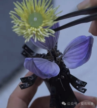投石科技作為人機交互領(lǐng)域的先行者,也一直致力于機械與藝術(shù)的結(jié)合,對機械裝置藝術(shù)的設(shè)計有著豐富的經(jīng)驗。李子柒視頻中所用的機械裝置結(jié)構(gòu),正和我們的機械花結(jié)構(gòu)相同。
