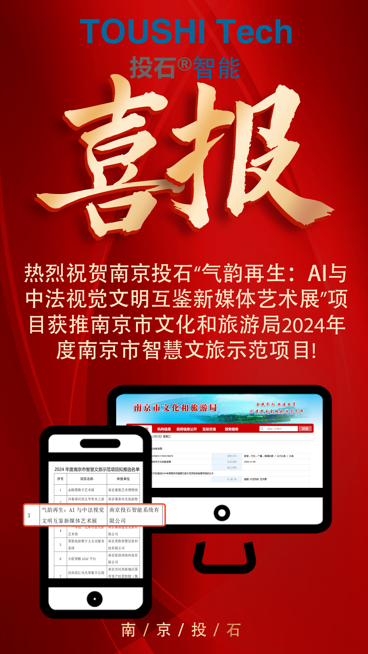 喜報(bào)!投石智能“氣韻再生"獲推南京市智慧文旅示范項(xiàng)目!