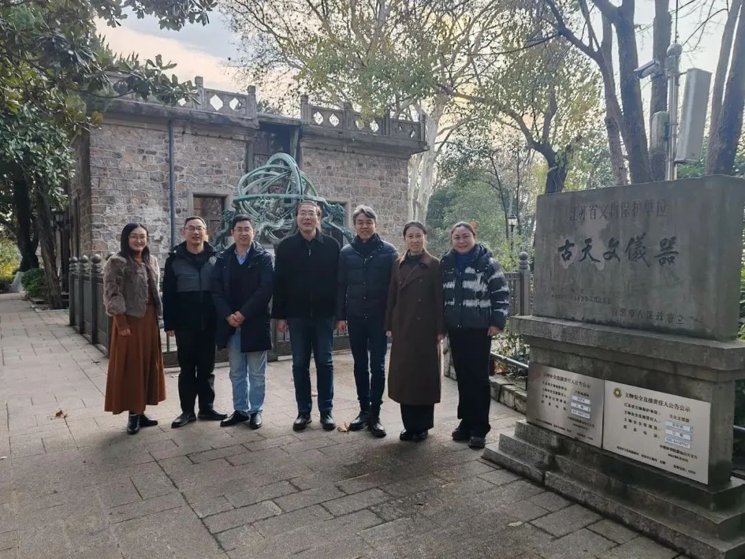 2024年12月11日下午,投石智能董事長孫峰峰同南京信息職業(yè)技術(shù)學院數(shù)碼藝術(shù)學院院長徐繞山、副院長魏硯雨及影視動畫教研室教師徐航、郭志強一行走進紫金山天文臺調(diào)研座談,南京市紫金山天文臺景區(qū)管理處處長梅寧、副處長莊銀傳、科普教育部負責人林滟茹熱情接待并陪同講解。