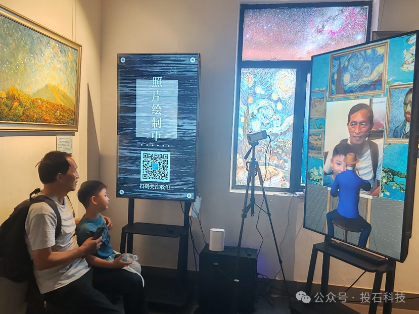 投石AI寫真館系列產(chǎn)品是一組具有強大功能和基于自訓練AI大模型“氣韻再生”模型的AI硬件風格轉(zhuǎn)繪產(chǎn)品,能夠現(xiàn)場拍攝游客現(xiàn)場照片或上傳自定義圖片并轉(zhuǎn)繪為印象派繪畫大師風格的油畫作品,或通過AI摳像切換場景。AIGC拍照機產(chǎn)品款式多樣,應用場景廣泛。