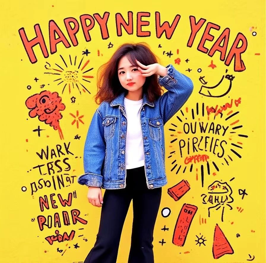 投石AI拍照機(jī)提供多種AIGC風(fēng)格轉(zhuǎn)繪功能,此次展示新年手繪涂鴉風(fēng)格