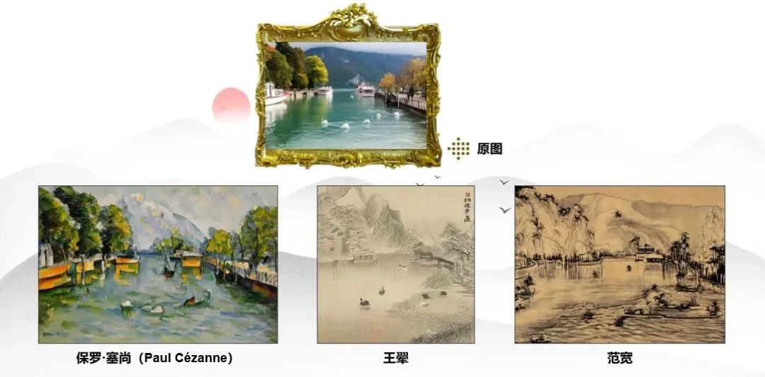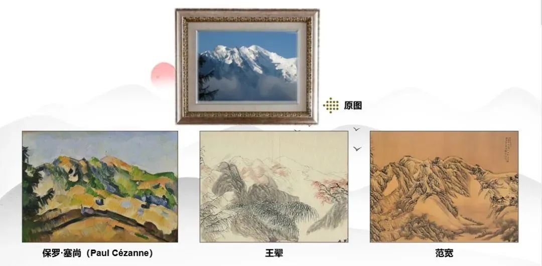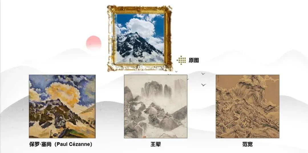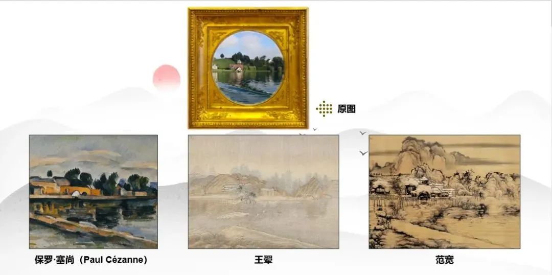 在這部作品中,我們用塞尚、王翚、范寬三位大師的氣韻再生AI模型算法,重新“繪制”立體的山水,以期彰顯中西文化中不同意蘊(yùn)的“平面性”表達(dá)。在大學(xué)美育的框架下,我們借助AI技術(shù)向大師們致敬。我們開發(fā)的“氣韻再生”大模型通過AI技術(shù),得以讓歷史上的藝術(shù)大師們在數(shù)字世界“氣韻再生”,讓他們的創(chuàng)造力在當(dāng)下的“新世界”延續(xù)。同時,我們也得以在數(shù)字世界里,讓大師們穿越到任何場景和語境中,創(chuàng)作出他們“本應(yīng)”創(chuàng)作出來的作品。