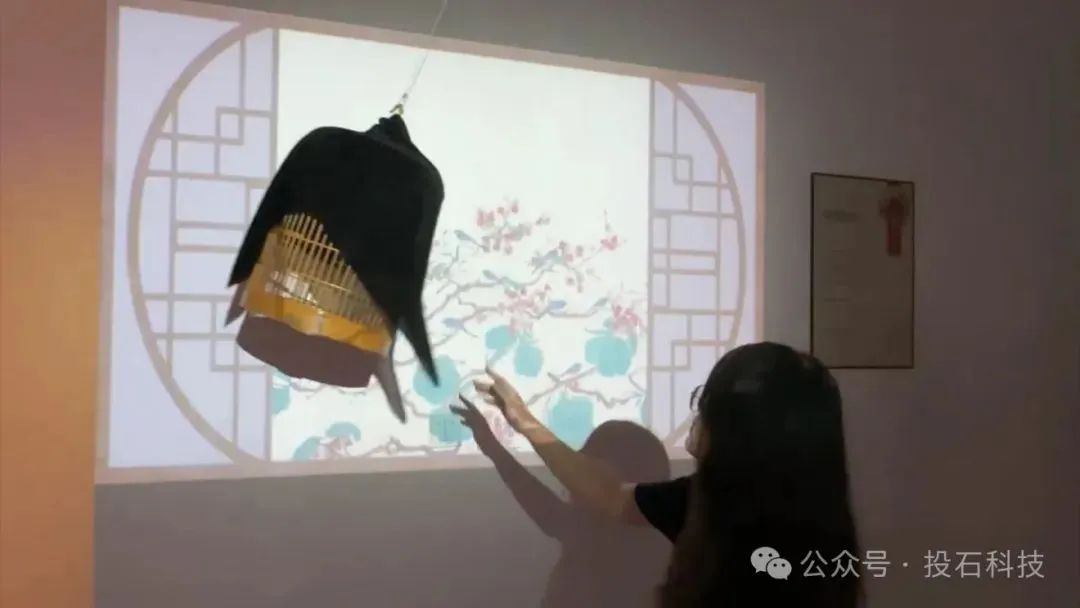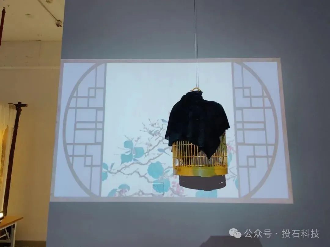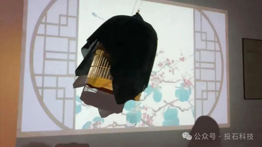 在這幅底圖之上,投石智能巧妙地融入了動(dòng)態(tài)的飛鳥元素,為了進(jìn)一步增強(qiáng)這種互動(dòng)體驗(yàn),我們?cè)O(shè)計(jì)了一個(gè)具有感應(yīng)功能的鳥籠裝置。