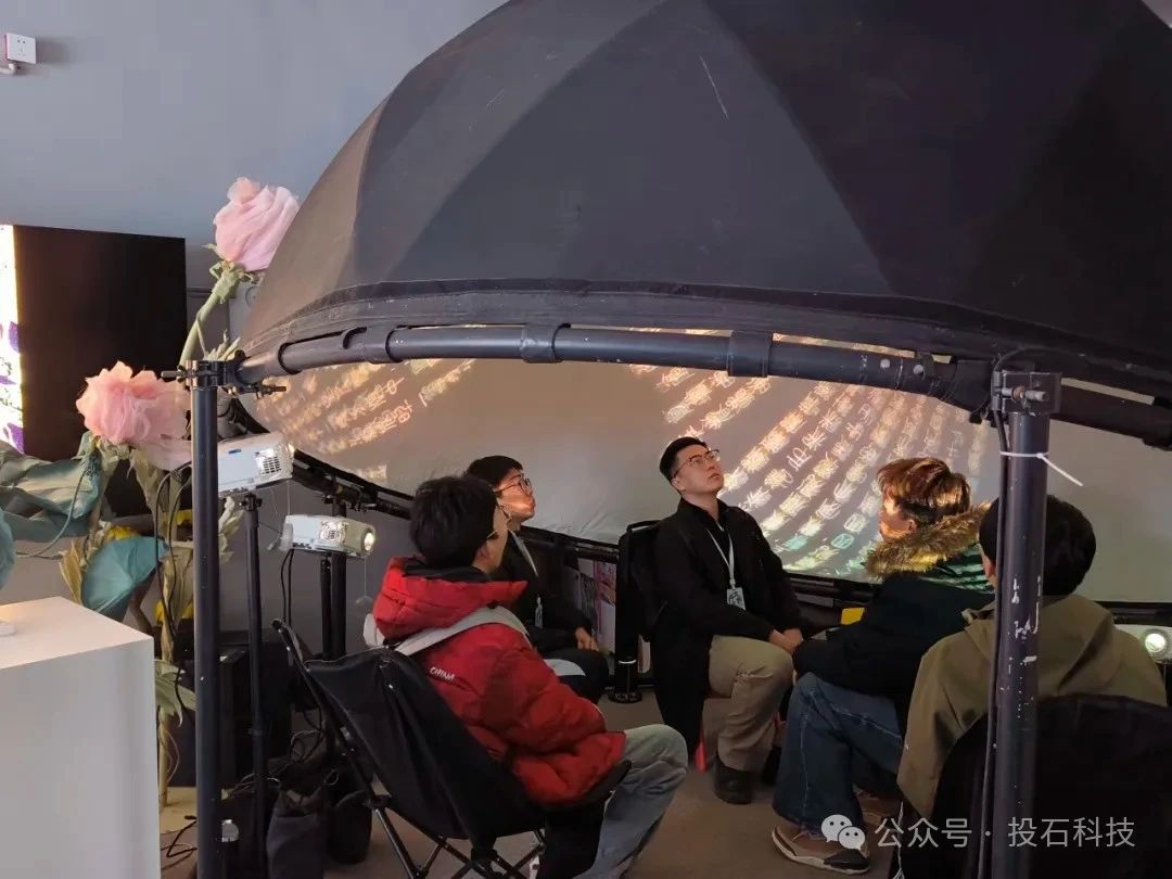 最受歡迎的展品還是投石的360度球幕影院項目,360度球幕采用多臺投影機組合而成的多通道環(huán)幕投影展示系統(tǒng)。環(huán)幕投影和多通道融合校正是一種時下流行的大型顯示技術,能夠在環(huán)形或者各類弧形幕布上投影豐富多彩的多媒體內(nèi)容,給予觀者身臨其境的獨特沉浸式體驗。