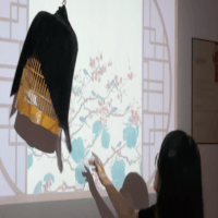 讓人大開眼界的是,在人機交互技術(shù)的加持下,每一件AIGC作品都能獲得與觀者互動、交流的觸點:特制手電筒照亮處,中國畫秒變外國畫;戴上感官耳機,不僅能看到、聽到、觸摸到畫作所展示的內(nèi)容,甚至能聞到畫作中可能會彌漫的味覺……