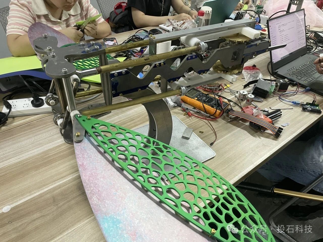 下午,作品制作指導(dǎo)與演示匯報環(huán)節(jié)將訓(xùn)練營推向高潮。學(xué)員們分組展示自己的作品,詳細(xì)闡述創(chuàng)作思路、技術(shù)實現(xiàn)過程以及作品所傳達(dá)的藝術(shù)理念。在匯報過程中,學(xué)員們相互學(xué)習(xí)、交流經(jīng)驗,進(jìn)一步加深了對機(jī)械藝術(shù)裝置創(chuàng)作的理解。投石智能董事長孫峰峰對學(xué)員們的作品給予了高度評價,進(jìn)行了專業(yè)點(diǎn)評,提出了寶貴的改進(jìn)意見和建議,并為各位學(xué)員頒發(fā)了結(jié)業(yè)證書。