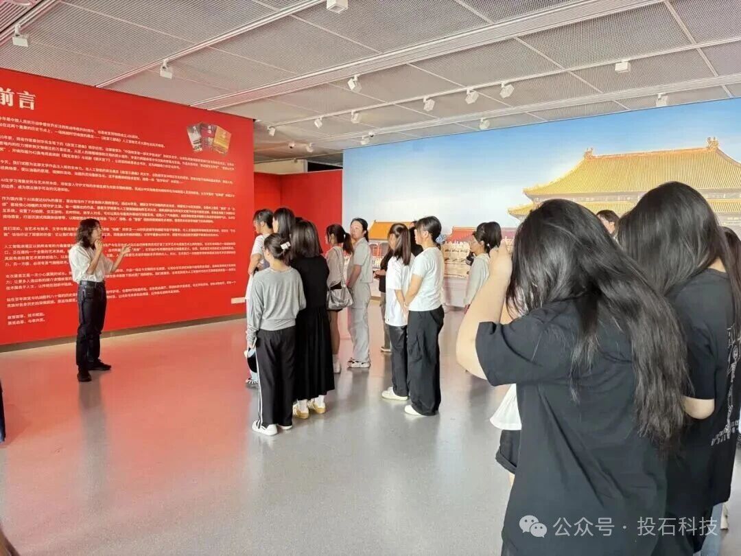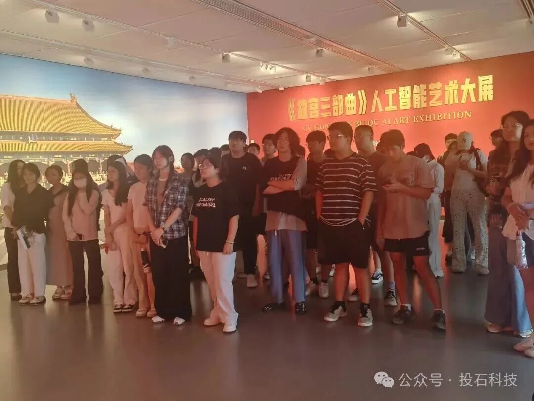 2025年9月10日,南京信息職業(yè)技術(shù)學(xué)院數(shù)碼藝術(shù)學(xué)院師生一行百余人參觀《故宮三部曲》人工智能藝術(shù)大展。校團(tuán)委書記錢曉丹,數(shù)碼藝術(shù)學(xué)院副院長(zhǎng)魏硯雨帶隊(duì)參觀。展覽工作人員從AI油畫技術(shù)路徑、展覽交互裝置設(shè)計(jì)等角度向師生講解了展覽。投石用精心設(shè)計(jì)的動(dòng)態(tài)裝置與AI油畫故事展現(xiàn):傳承不是簡(jiǎn)單的復(fù)制,而是讓今人筆墨與古人意趣對(duì)話,文明才能生生不息。”