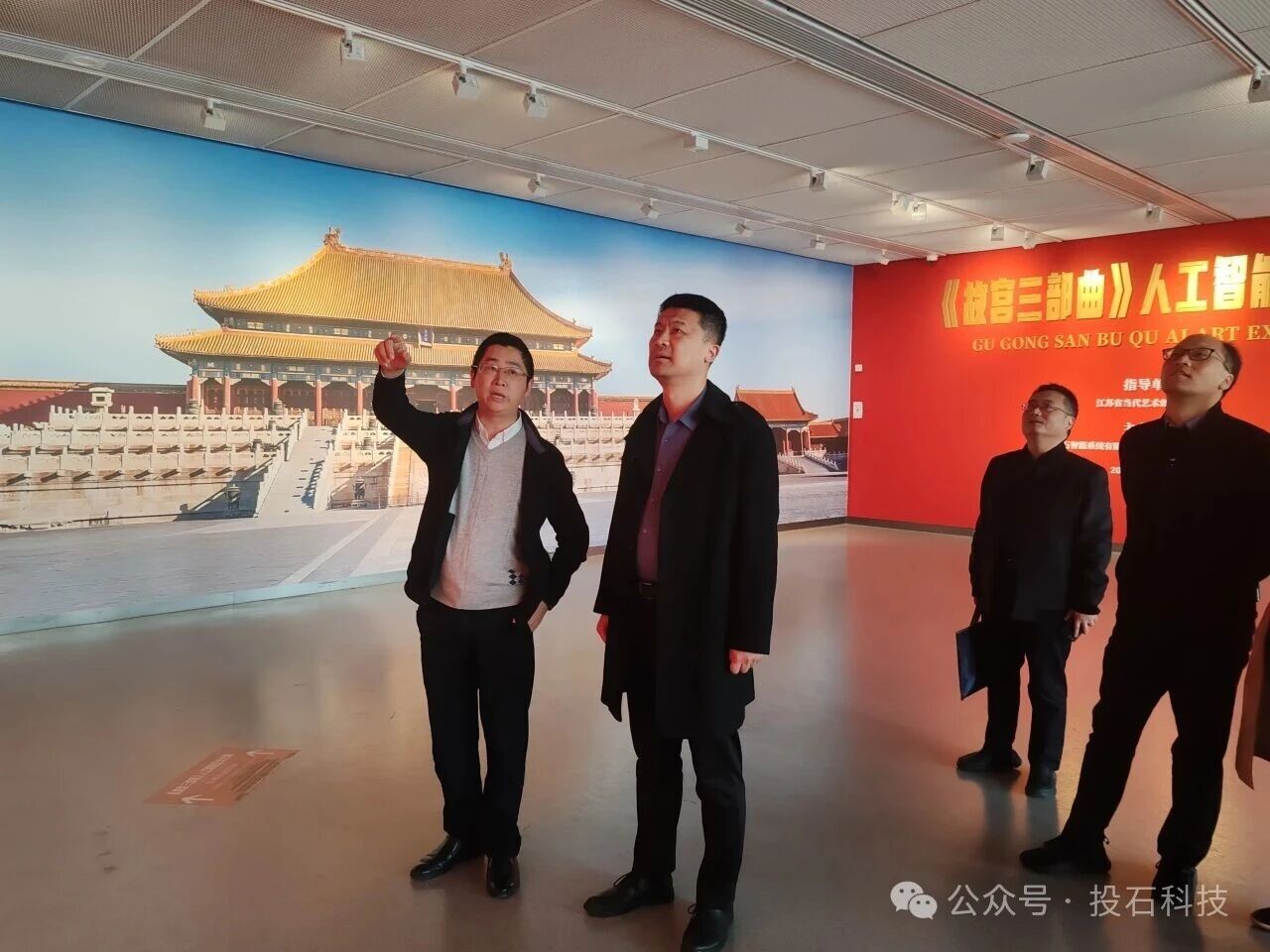 2025年11月3日下午,文化和旅游部科技教育司副司長(zhǎng)肖健,文化和旅游部科技教育司信息化處處長(zhǎng)、一級(jí)調(diào)研員馬鳴遠(yuǎn),江蘇省文化和旅游廳科技教育處處長(zhǎng)、一級(jí)調(diào)研員李明珍,江蘇省文化藝術(shù)研究院院長(zhǎng)張超,江蘇省文化和旅游廳科技教育處二級(jí)調(diào)研員李革、南京市文化和旅游局科技教育處處長(zhǎng)魯海榮、南京市文化和旅游局科技教育處四級(jí)調(diào)研員李海峰一行七人蒞臨《故宮三部曲》人工智能藝術(shù)大展參觀座談。南京投石智能系統(tǒng)有限公司董事長(zhǎng)孫峰峰陪同參觀和調(diào)研。
