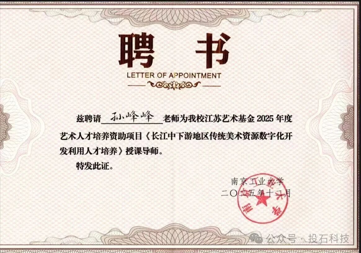 同時,南京工業(yè)大學聘請孫峰峰為2025年度江蘇省藝術(shù)基金人才培養(yǎng)項目授課導師,并舉行聘任儀式。