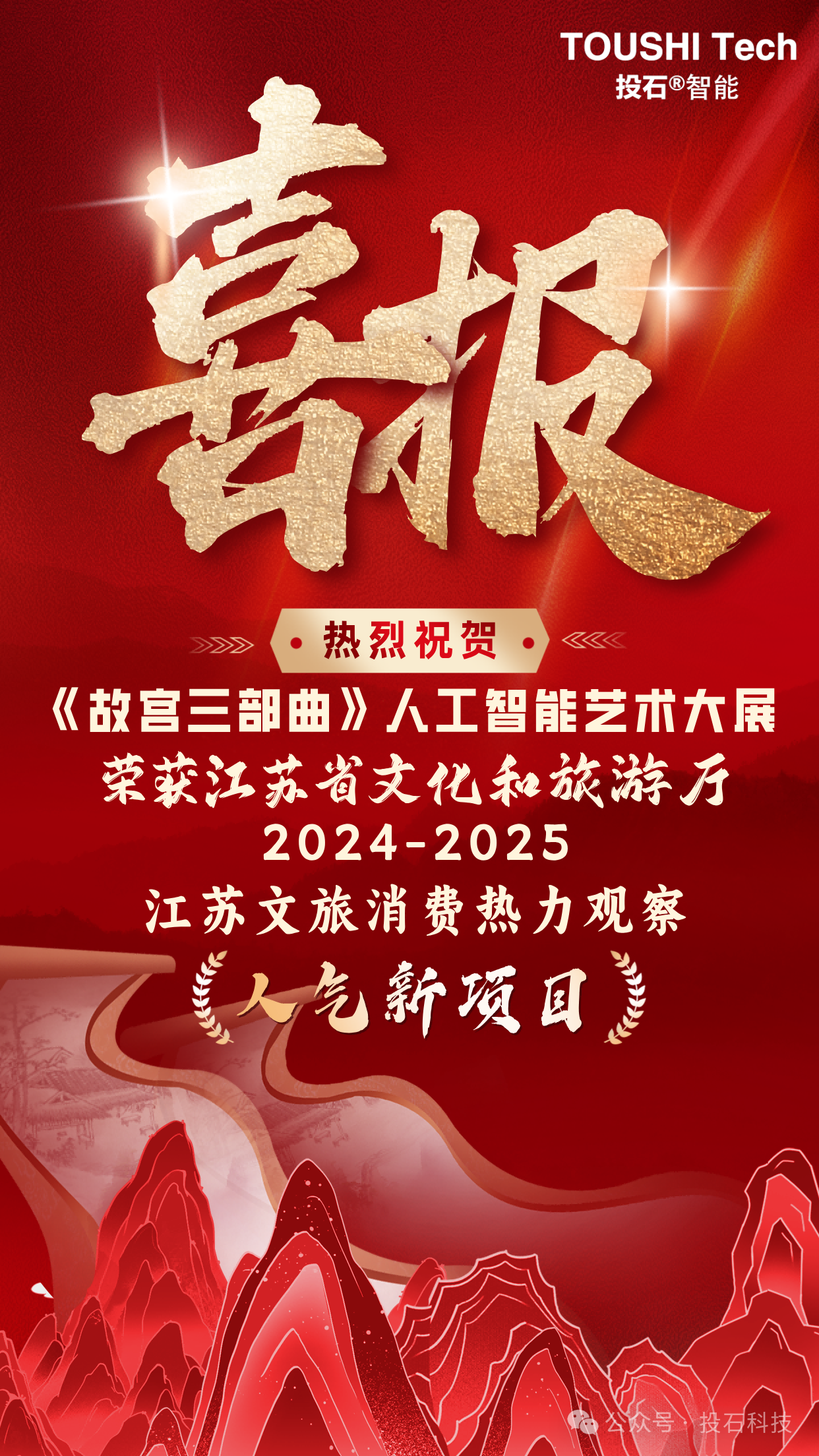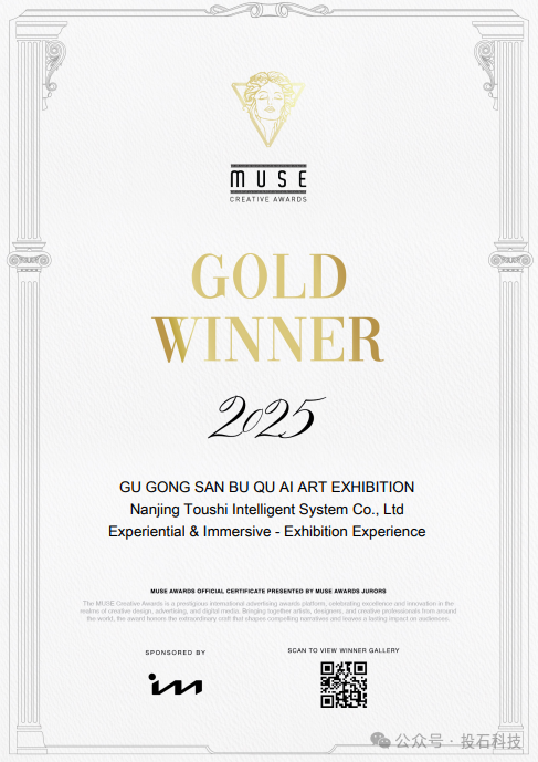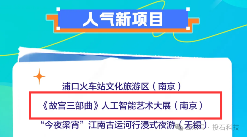 2025年12月15日,南京投石智能系統(tǒng)有限公司建設(shè)運營的《故宮三部曲》人工智能藝術(shù)大展成功入選“2024-2025江蘇文旅消費熱力觀察”優(yōu)秀案例,并榮登全省“人氣新項目”榜二,這一榮譽既是對展覽運營成效的權(quán)威認(rèn)可,更是投石智能”AI+藝術(shù)”理念的生動注腳。
