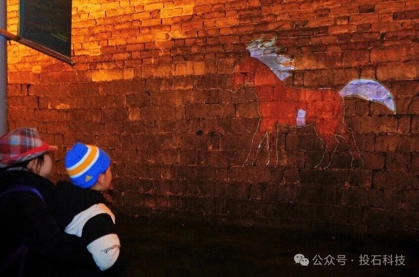 計(jì)劃的首次呈現(xiàn)已于近日在南京歷史文化地標(biāo)——玄武湖公園的城墻區(qū)域溫情上演。通過定制改造的電動車移動投影技術(shù),一匹匹充滿活力與希望的駿馬光影動畫隨著電動車的移動,躍然于古老的明城墻之上行走,歷史厚重感與未來憧憬在此刻交匯,形成震撼人心的視覺景象與情感共鳴。這不僅是科技與藝術(shù)的融合展示,更是一場關(guān)于夢想與傳承的公共宣言。