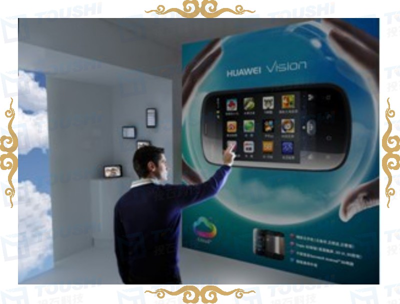 2011年9月上旬,南京投石智能系統(tǒng)有限公司為華為云手機(jī)提供多媒體展覽展示服務(wù)。通過(guò)投石墻面互動(dòng)投影系統(tǒng),虛擬迎賓系統(tǒng),模擬Android系統(tǒng)等多媒體互動(dòng)展示技術(shù)和設(shè)備,生動(dòng)形象地展示了華為云手機(jī)服務(wù)。